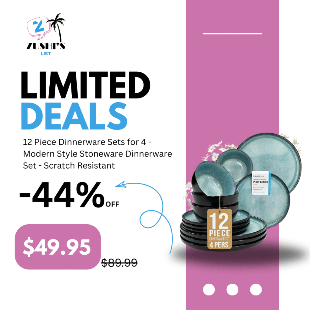 12 Piece Dinnerware Sets for 4 – Modern Style Stoneware Dinnerware Set – Scratch Resistant, Dishwasher Safe Plates and Bowls Sets Ceramic, Dish Set, Bowl and Plate Set – Black and Petrol Blue…
