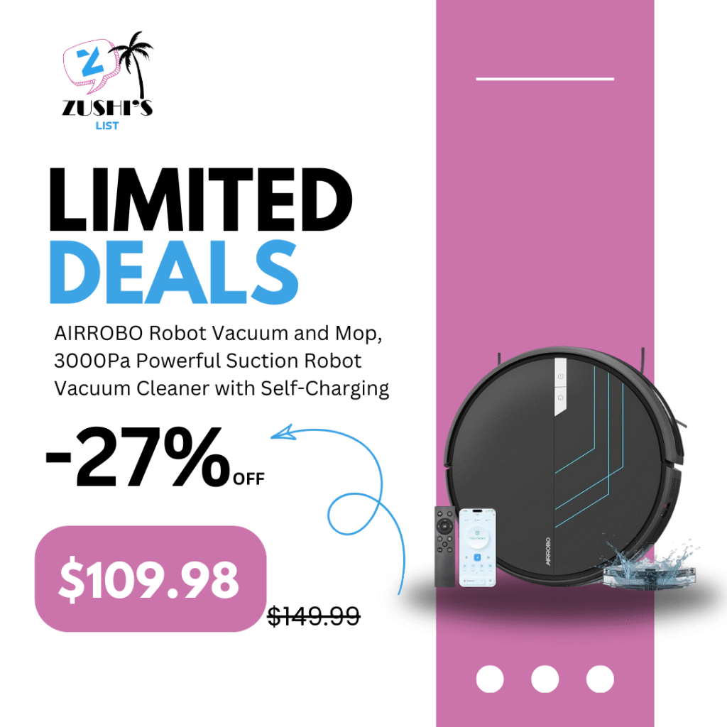AIRROBO Robot Vacuum and Mop, 3000Pa Powerful Suction Robot Vacuum Cleaner with Self-Charging, Wi-Fi/App/Voice Control, Advanced Obstacle Avoidance, Slim Design, Ideal for Pet Hair, Hard Floor,Carpet