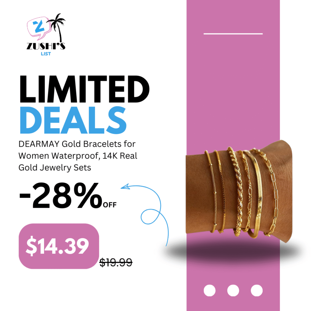DEARMAY Gold Bracelets for Women Waterproof, 14K Real Gold Jewelry Sets Trendy Thin Dainty Stackable Cuban Link Paperclip Chain Bracelet Pack Fashion Accessories Gifts for Womens