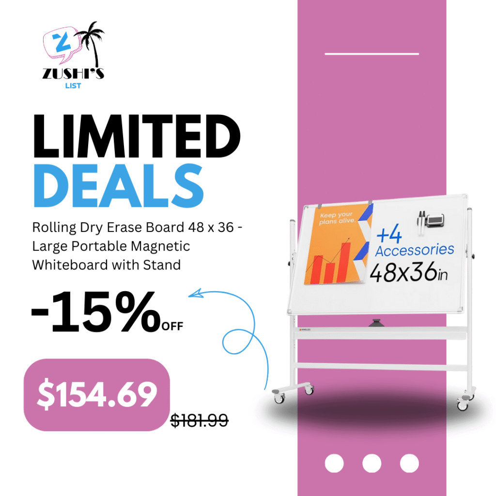 Rolling Dry Erase Board 48 x 36 – Large Portable Magnetic Whiteboard with Stand – Double Sided Easel Style Whiteboard with Wheels – Mobile Standing White Board for Office, Classroom & Home