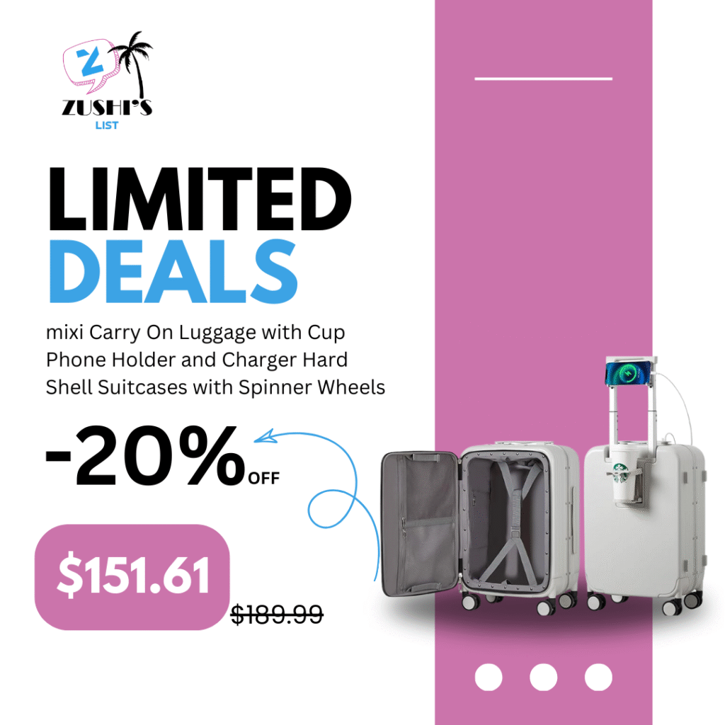 mixi Carry On Luggage with Cup Phone Holder and Charger Hard Shell Suitcases with Spinner Wheels, 20 Inch Smoke White