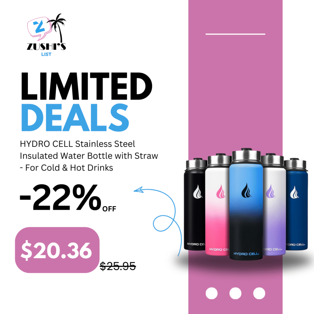 HYDRO CELL Stainless Steel Insulated Water Bottle with Straw – For Cold & Hot Drinks – Metal Vacuum Flask with Screw Cap and Modern Leakproof Sport Thermos for Adults (Blue/Black 24oz)