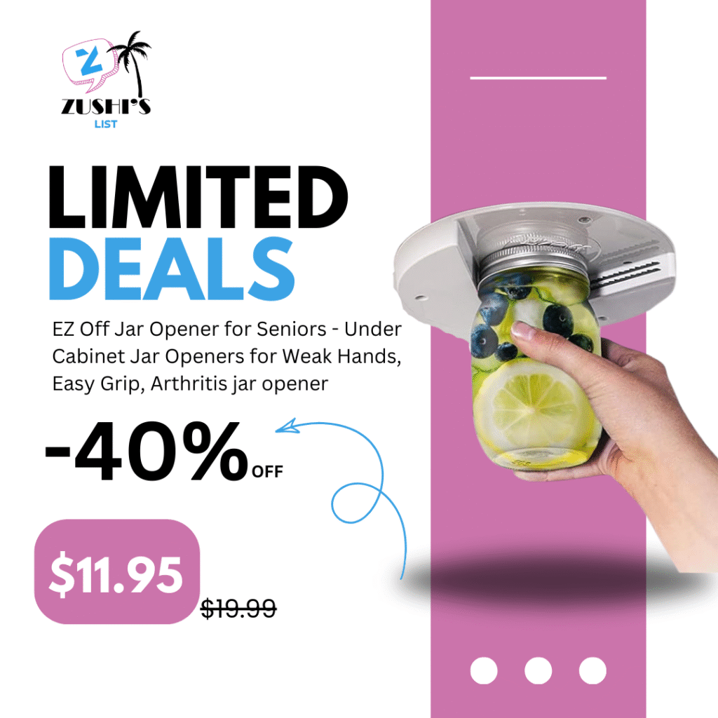 EZ Off Jar Opener for Seniors – Under Cabinet Jar Openers for Weak Hands, Easy Grip, Arthritis jar opener, One Handed Gadgets & Bottle Opener – Essential Kitchen Gadgets for Home Assistance – White