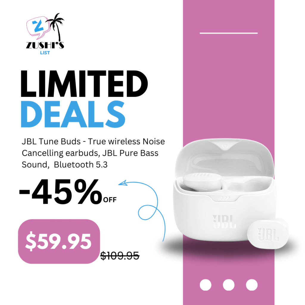 JBL Tune Buds – True wireless Noise Cancelling earbuds, JBL Pure Bass Sound, Bluetooth 5.3, 4-Mic technology for Crisp, Clear Calls, Up to 48 hours of battery life, Water and dust resistant (White)