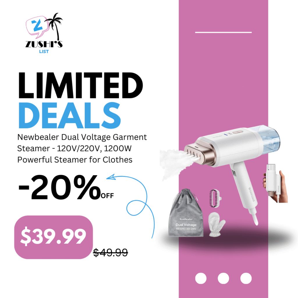 Newbealer Dual Voltage Garment Steamer – 120V/220V, 1200W Powerful Steamer for Clothes, Home & Travel Use, Horizontal & Vertical Steaming, 20s Heat-up, Foldable, 1.72lbs, 180ml (Gold)