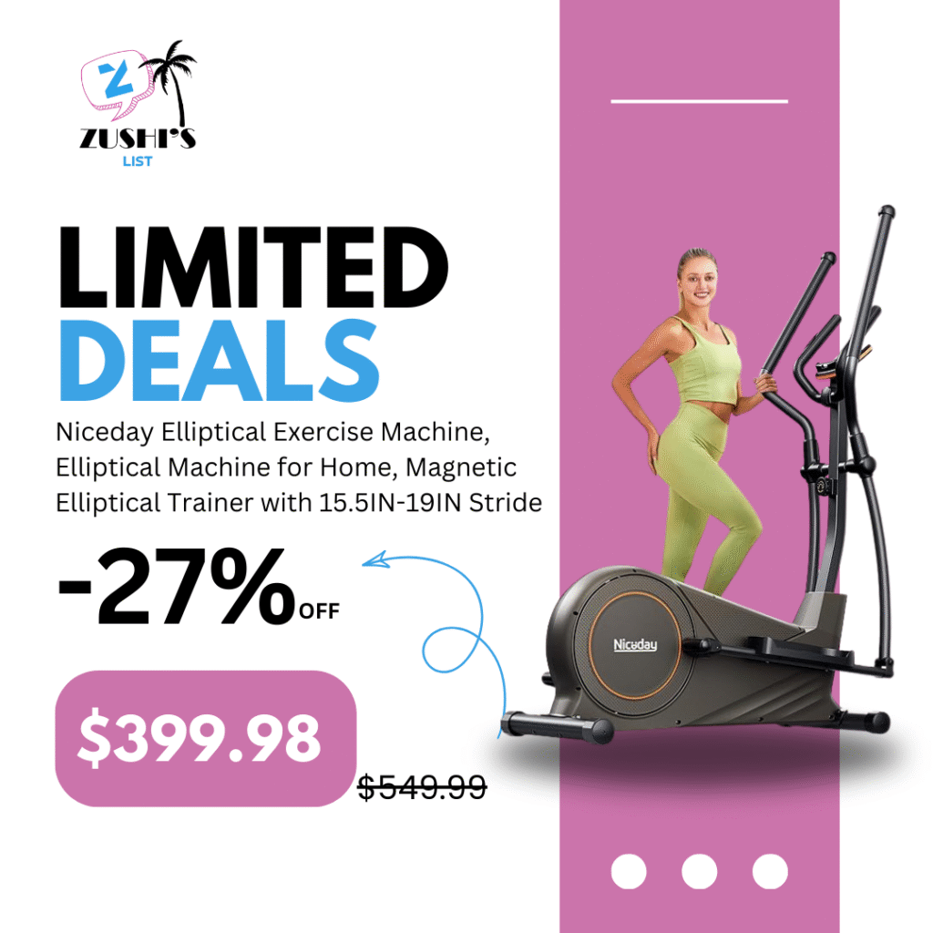 Niceday Elliptical Exercise Machine, Elliptical Machine for Home, Magnetic Elliptical Trainer with 15.5IN-19IN Stride, 16 Resistance Levels, 400LBS Loading Capacity, Support Kinomap APP