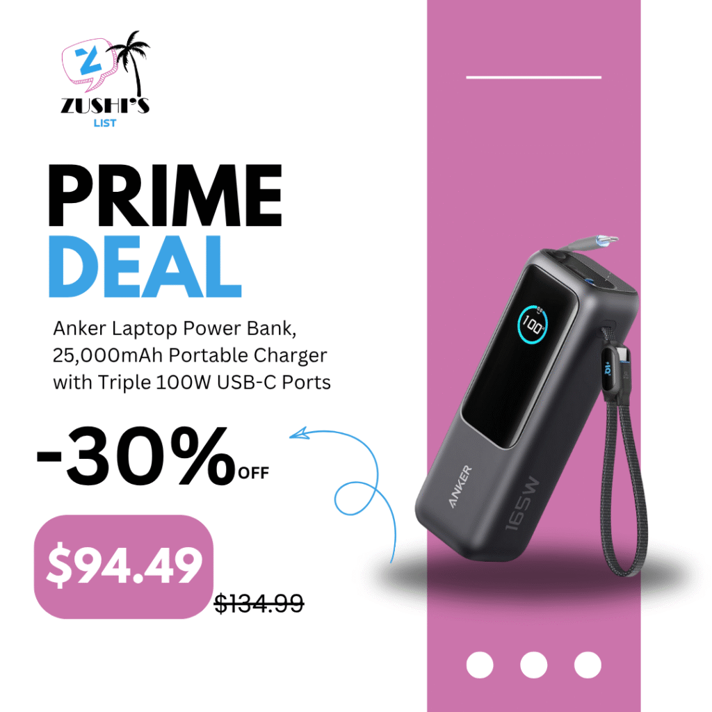 Anker Laptop Power Bank, 25,000mAh Portable Charger with Triple 100W USB-C Ports, Built-in and Retractable Cables, for iPhone 16/15 Series, MacBook, Samsung, and More (Flight-Approved)