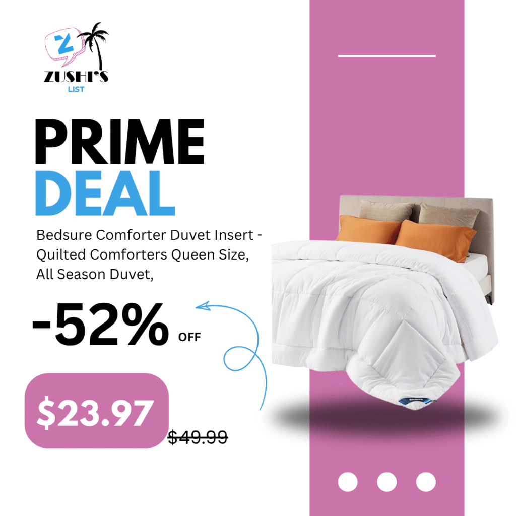 Bedsure Comforter Duvet Insert – Quilted Comforters Queen Size, All Season Duvet, Down Alternative Bedding, with 8 Tabs, Gifts for Women/Men, White, Queen 88 x 88 Inches