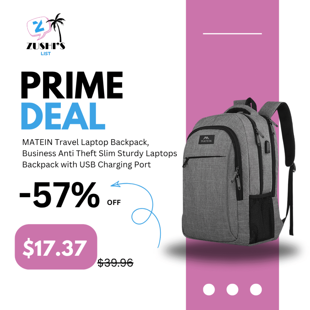 MATEIN Travel Laptop Backpack, Business Anti Theft Slim Sturdy Laptops Backpack with USB Charging Port, Water Resistant College School Computer Bag Gift for Men & Women Fits 15.6 Inch Notebook, Grey