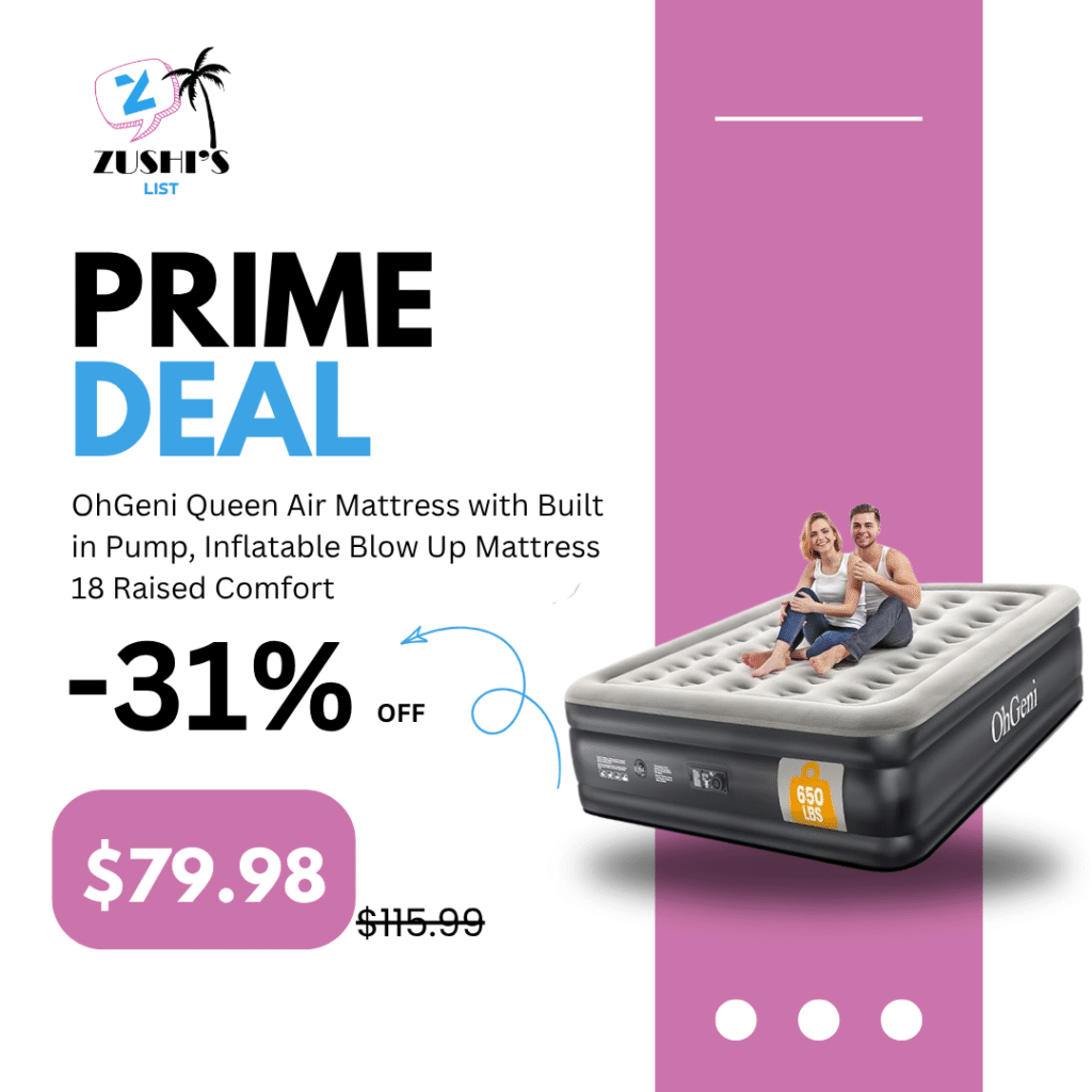 OhGeni Queen Air Mattress with Built in Pump, Inflatable Blow Up Mattress 18 Raised Comfort,Upgraded Surface Portable Mattress, Air Bed for Camping, Home and Guest, Colchone Inflable, 650 lbs Max
