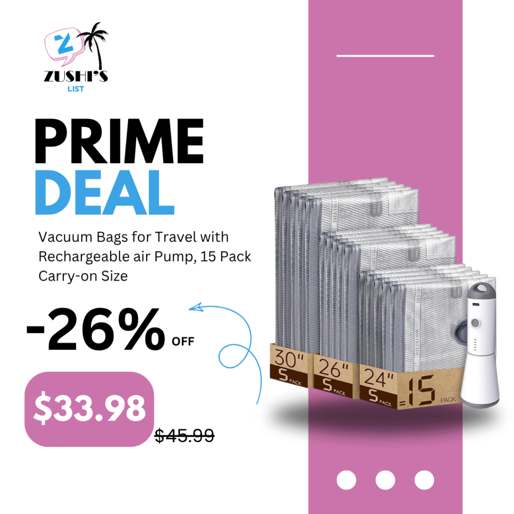 Vacuum Bags for Travel with Rechargeable air Pump, 15 Pack Carry-on Size Compression Packing Bags for Luggage and Suitcase, Space Saver for Clothes and Clothing Travel