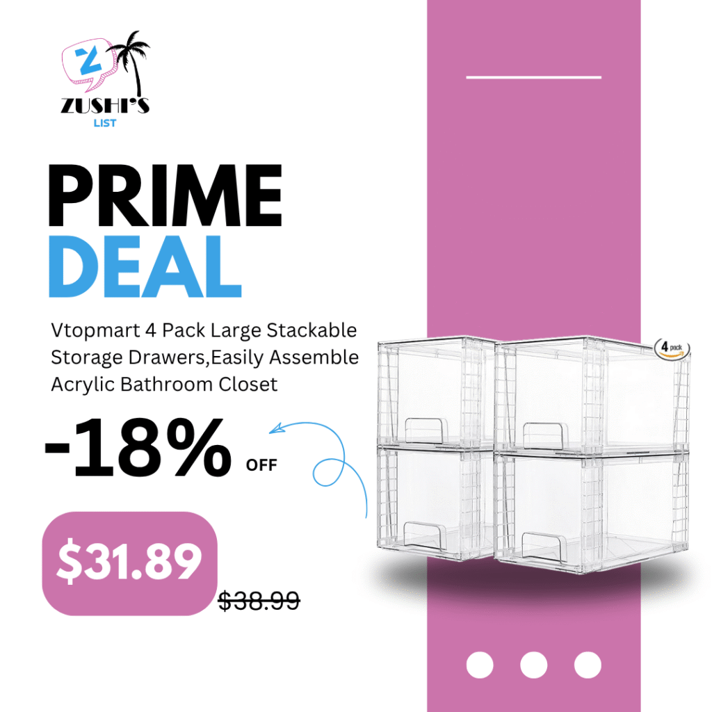 Vtopmart 4 Pack Large Stackable Storage Drawers,Easily Assemble Acrylic Bathroom Closet Undersink Organizers and Storage,Plastic Bins for Kitchen Cabinets,Pantry,Makeup,Medicine Organization
