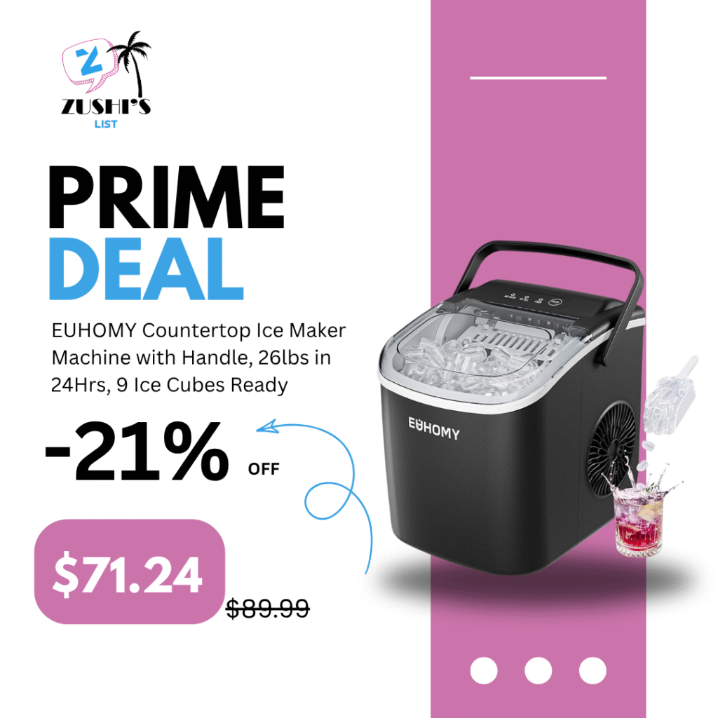 EUHOMY Countertop Ice Maker Machine with Handle, 26lbs in 24Hrs, 9 Ice Cubes Ready in 6 Mins, Auto-Cleaning Portable Ice Maker with Basket and Scoop, for Home/Kitchen/Camping/RV. (Black)