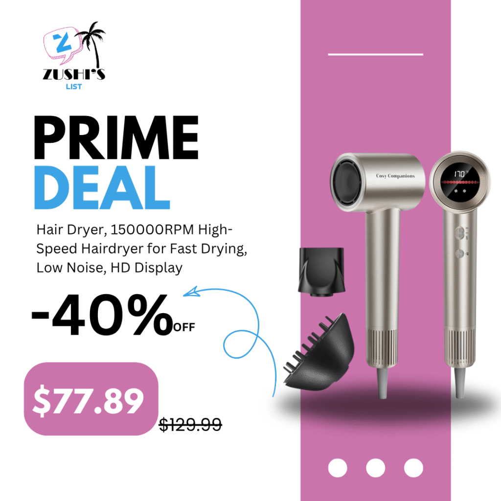 air Dryer, 150000RPM High-Speed Hairdryer for Fast Drying, Low Noise, HD Display, 5 Temps & 2 Speeds, 500 Million Negative Ionic Blow Dryer with Diffuser & Nozzle for Home and Travel Salon, Gold