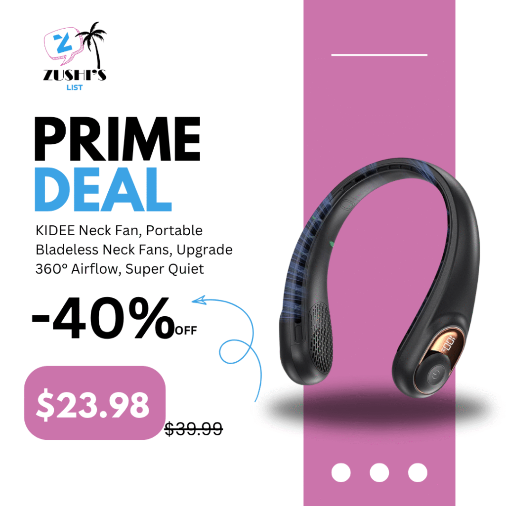 KIDEE Neck Fan, Portable Bladeless Neck Fans, Upgrade 360° Airflow, Super Quiet, 3 Speeds, 4000mAh Personal Wearable Neck Fan, Upgraded Cooling Air Volume USB Rechargeable Hands Free Fan
