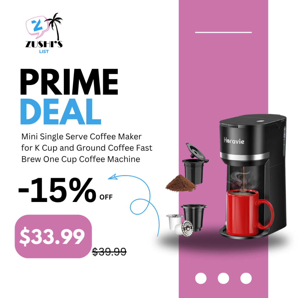 Mini Single Serve Coffee Maker for K Cup and Ground Coffee, Fast Brew One Cup Coffee Machine with Descaling Reminder and Water Window, 6 to 12 oz. Brew Sizes, Black