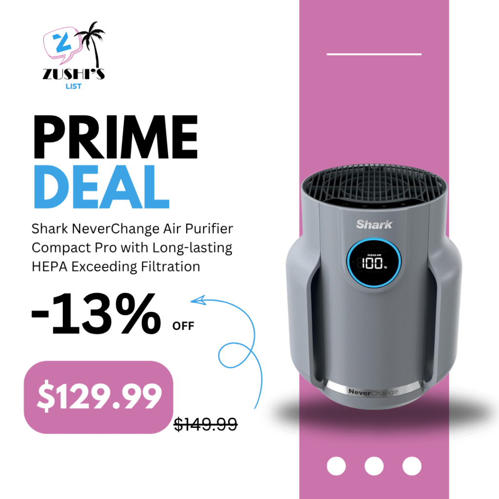Shark NeverChange Air Purifier Compact Pro with Long-lasting HEPA Exceeding Filtration, For Pet Dander, Dust, Smoke, Allergens, Up to 250 sq. ft. for Bedroom, Home Office, Dorm, HP071BRN (2025)