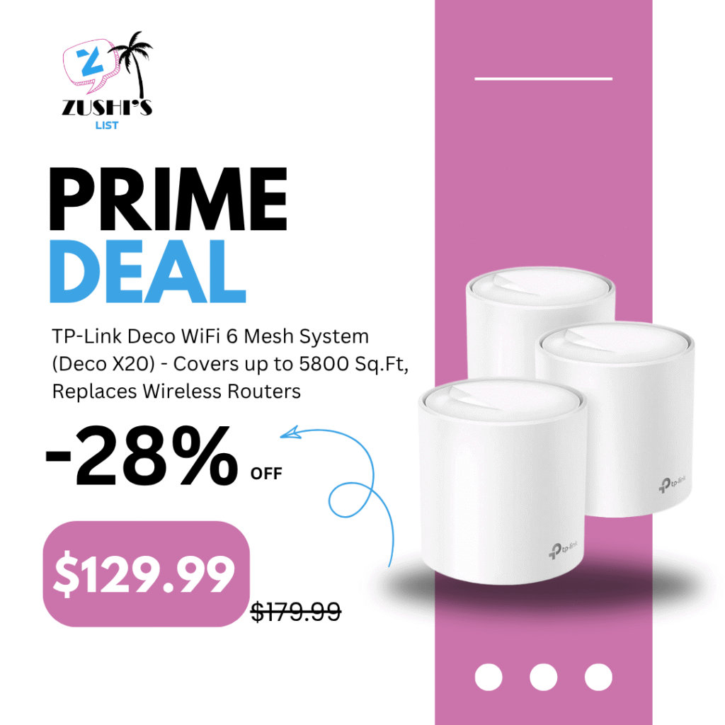 TP-Link Deco WiFi 6 Mesh System(Deco X20) – Covers up to 5800 Sq.Ft, Replaces Wireless Routers and Extenders(3-Pack, 6 Ethernet Ports in Total, Supports Wired Ethernet Backhaul)