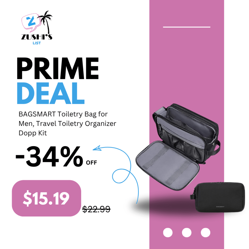 BAGSMART Toiletry Bag for Men, Travel Toiletry Organizer Dopp Kit Water-resistant Shaving Bag for Toiletries Accessories, Door Room Essentials, Black-medium