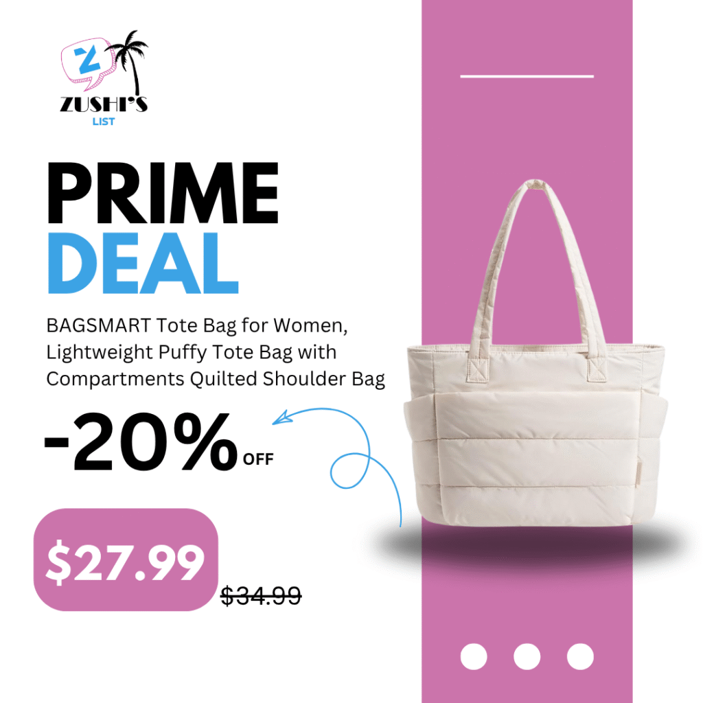 BAGSMART Tote Bag for Women, Lightweight Puffy Tote Bag with Compartments Quilted Shoulder Bag Handbag for Travel, Work, Gym