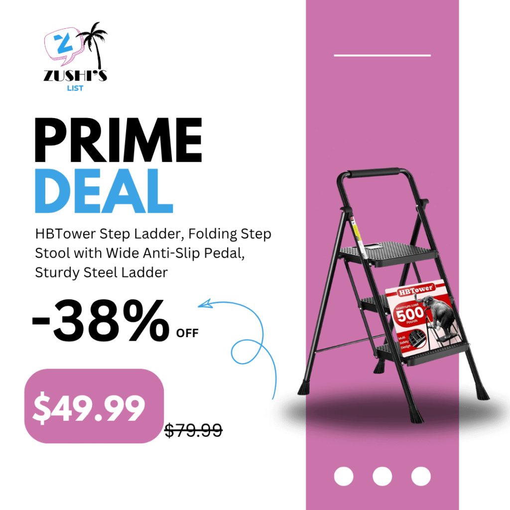 HBTower Step Ladder, Folding Step Stool with Wide Anti-Slip Pedal, Sturdy Steel Ladder, Convenient Handrail, Lightweight, Portable Steel Step Stool