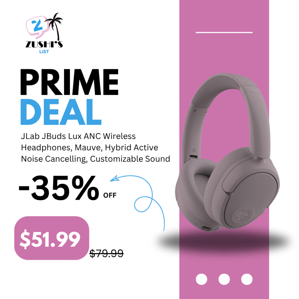 JLab JBuds Lux ANC Wireless Headphones, Mauve, Hybrid Active Noise Cancelling, Customizable Sound, Spatial Audio Compatible, Premium Over-Ear Bluetooth Headset