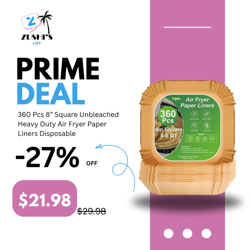 360 Pcs 8” Square Unbleached Heavy Duty Air Fryer Paper Liners Disposable, Non-Stick & Non-Leak Parchment Paper Liners for Airfryer Basket, Deep Fryer Parts & Accessories