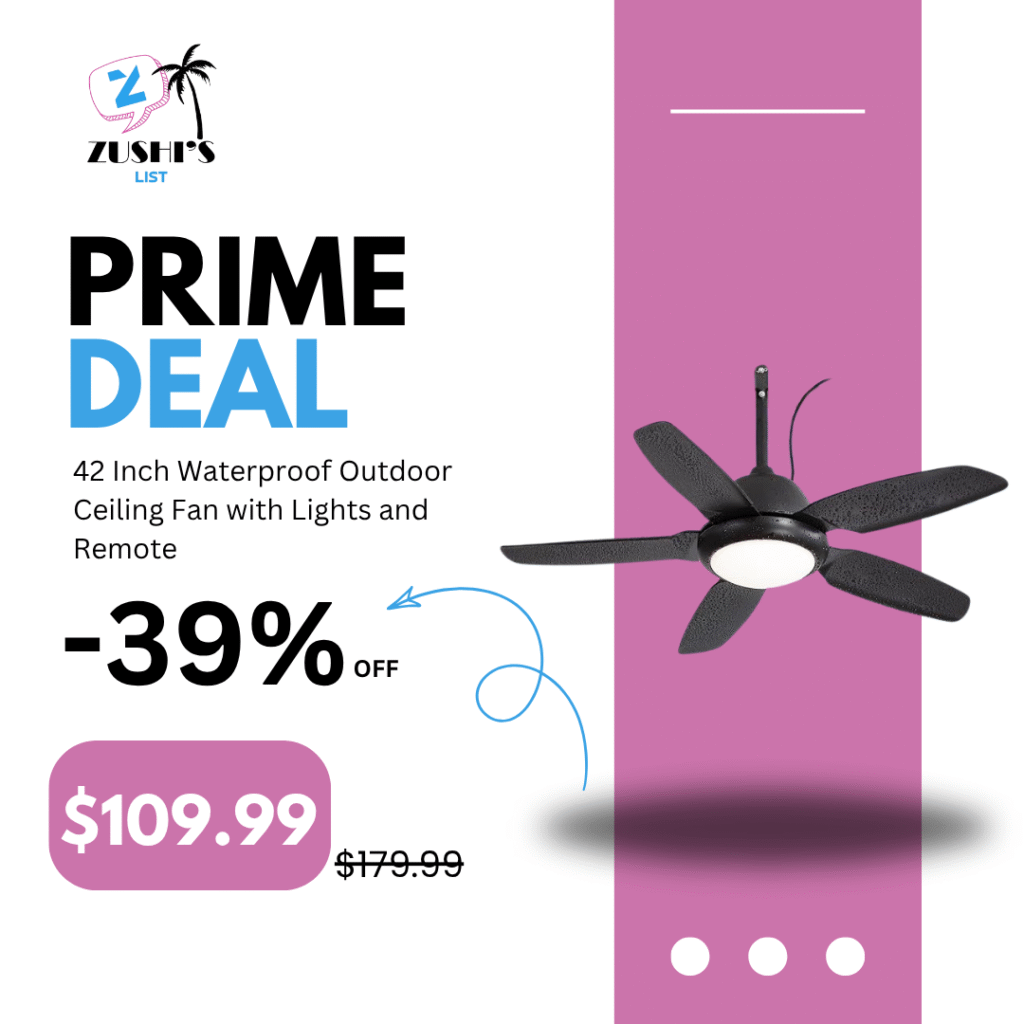 42 Inch Waterproof Outdoor Ceiling Fan with Lights and Remote,IP65 Hanging Gazebo Fan with 3CCT 6-Speed DC Motor,Black Wet Rated Plug in Ceiling Fan with Cord for Patios Porch Pergola