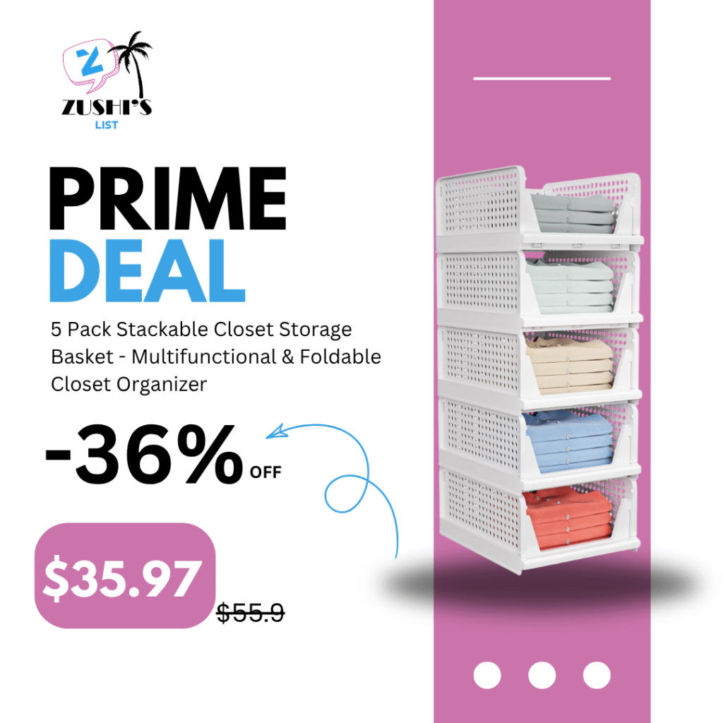 5 Pack Stackable Closet Storage Basket – Stackable Storage Bins, Multifunctional & Foldable Closet Organizer, Wardrobe Cupboard Space-Saving Hat Storage Drawer Organizer, White