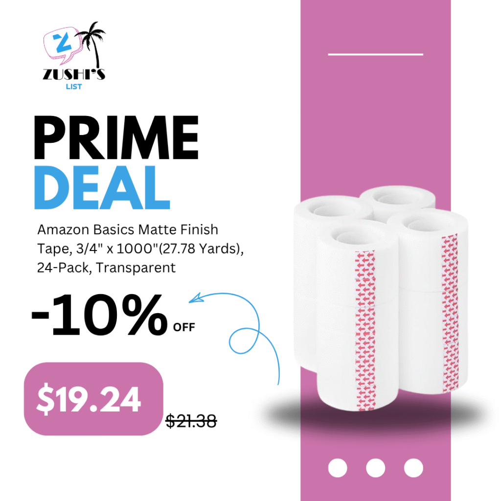 Amazon Basics Matte Finish Tape, 3/4″ x 1000″(27.78 Yards), 24-Pack, Transparent