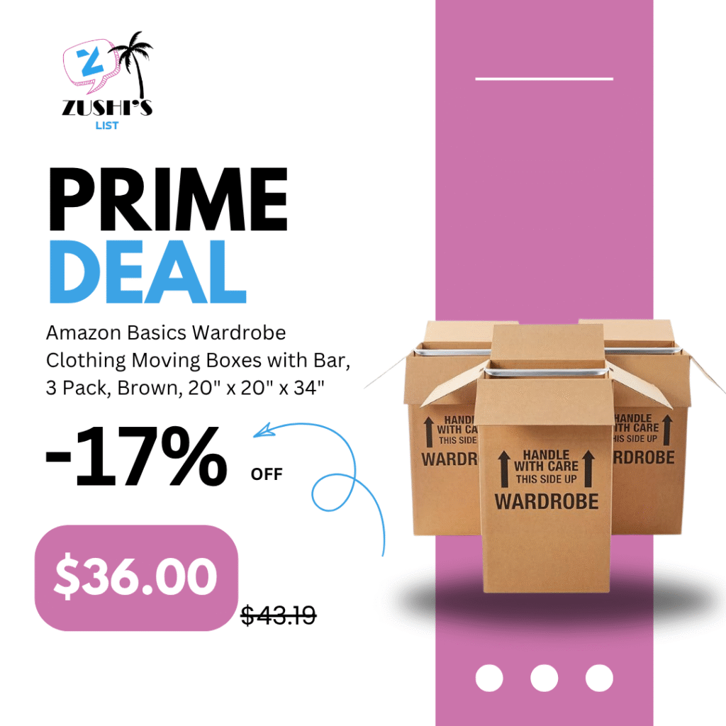 Amazon Basics Wardrobe Clothing Moving Boxes with Bar, 3 Pack, Brown, 20″ x 20″ x 34″