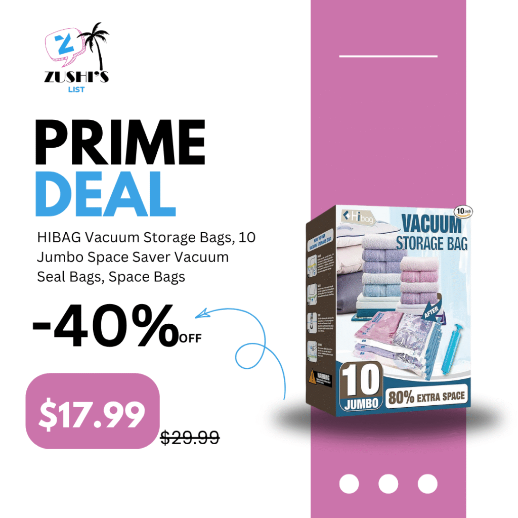 HIBAG Vacuum Storage Bags, 10 Jumbo Space Saver Vacuum Seal Bags, Space Bags, Vacuum Sealer Bags for Clothes, Comforters, Blankets, Bedding (10J)