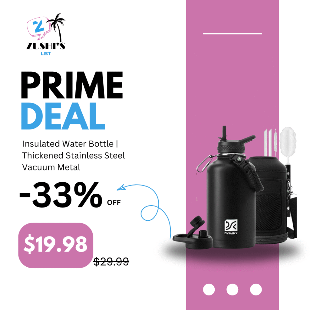 Insulated Water Bottle | Thickened Stainless Steel Vacuum Metal | Portable Sports Half Gallon Large Water Jug for Gym and Hiking with Straw, Carrier Bag, Handle Strap | BPA-Free 64 oz
