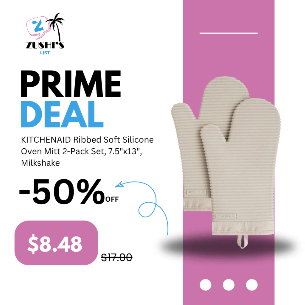 KITCHENAID Ribbed Soft Silicone Oven Mitt 2-Pack Set, 7.5″x13″, Milkshake