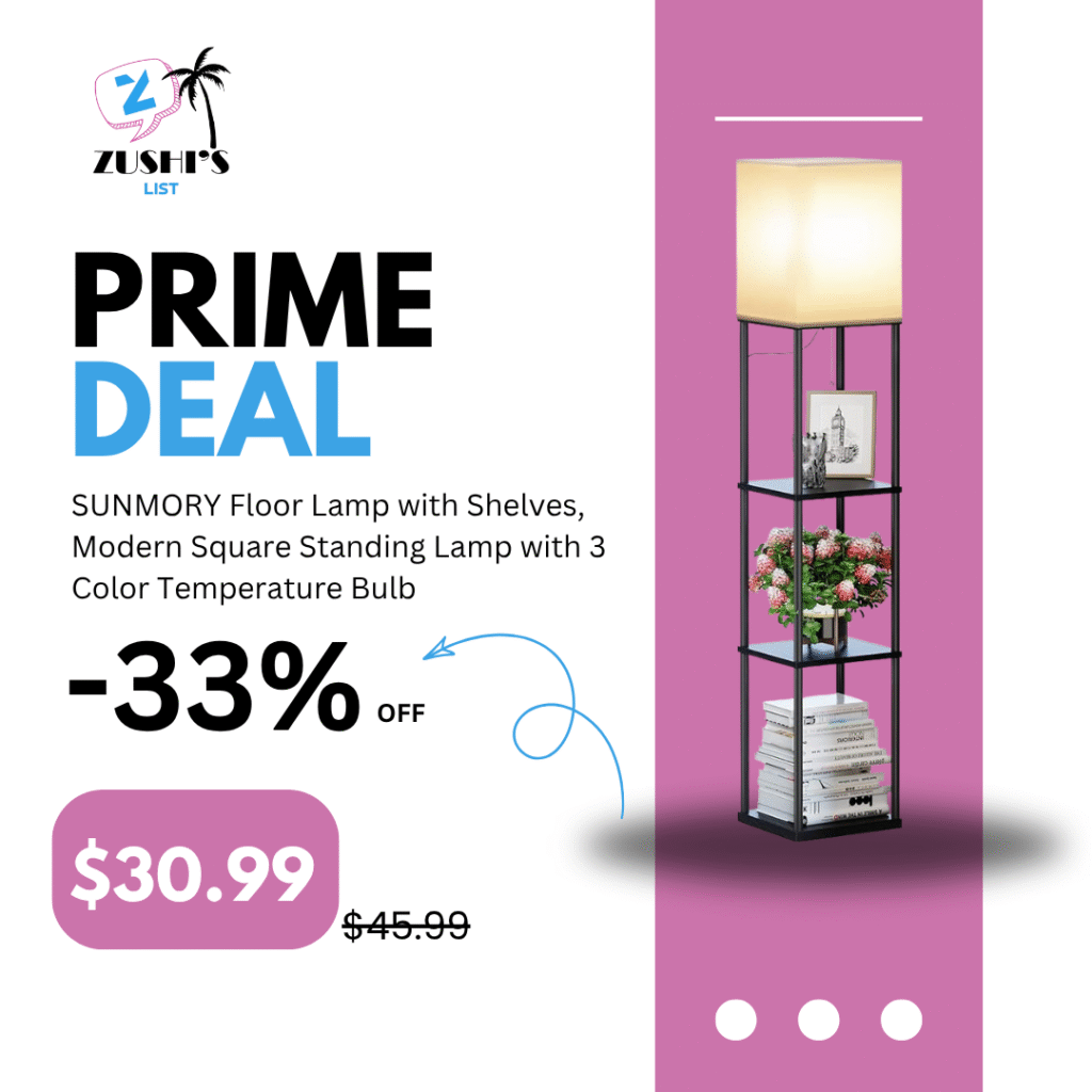 SUNMORY Floor Lamp with Shelves, Modern Square Standing Lamp with 3 Color Temperature Bulb, Corner Display Bookshelf Lamp for Living Room and Bedroom(Black)