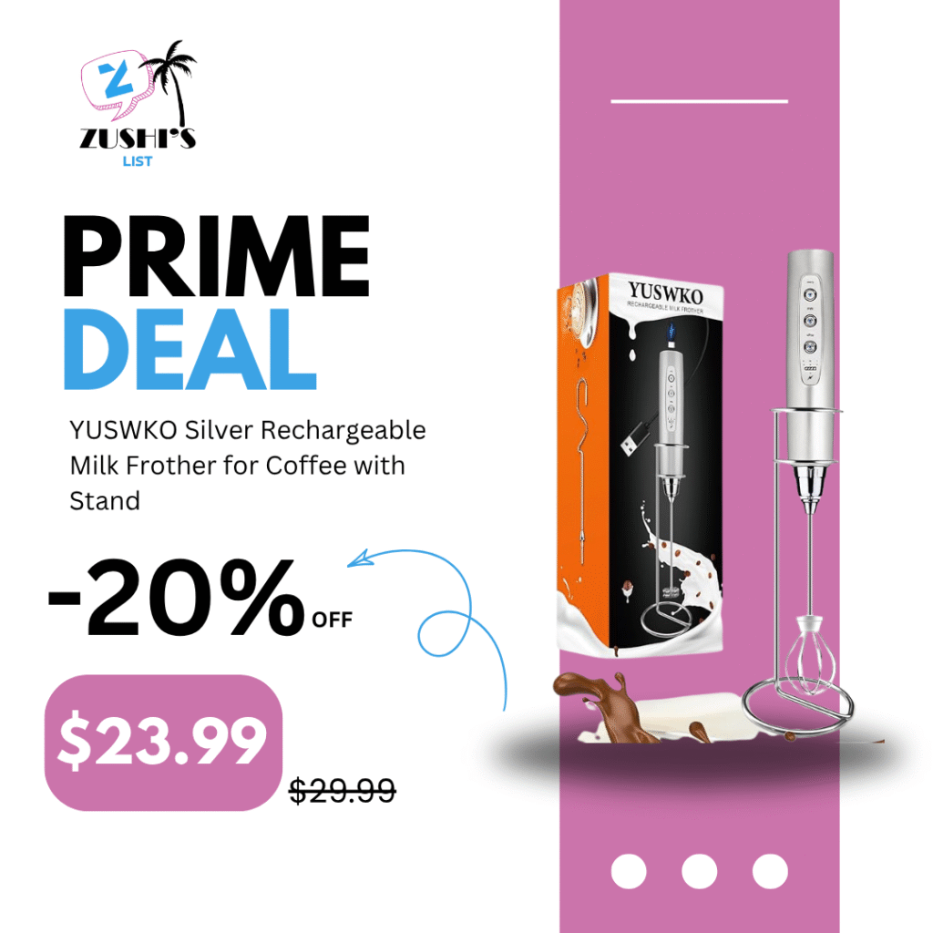 YUSWKO Silver Rechargeable Milk Frother for Coffee with Stand, Handheld Drink Mixer with 3 Heads 3 Speeds Electric Stirrers for Latte, Cappuccino, Hot Chocolate, Egg