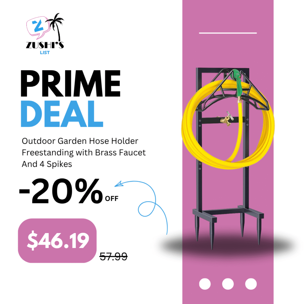 Outdoor Garden Hose Holder Freestanding with Brass Faucet And 4 Spikes, Heavy Duty Metal Water Hose Reel Stand Hanger Rack Organizer Holds Storage 150ft Hose for Outside Yard Lawn, Black