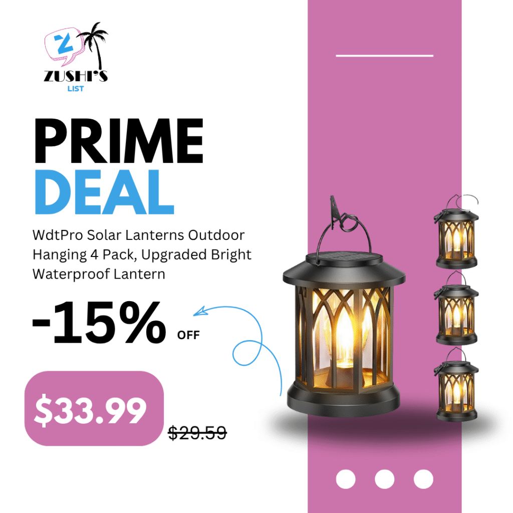 WdtPro Solar Lanterns Outdoor Hanging 4 Pack, Upgraded Bright Waterproof Lantern for Outside, Over 12Hrs Powered Lights for Garden, Yard, Patio Decor (Warm Light)