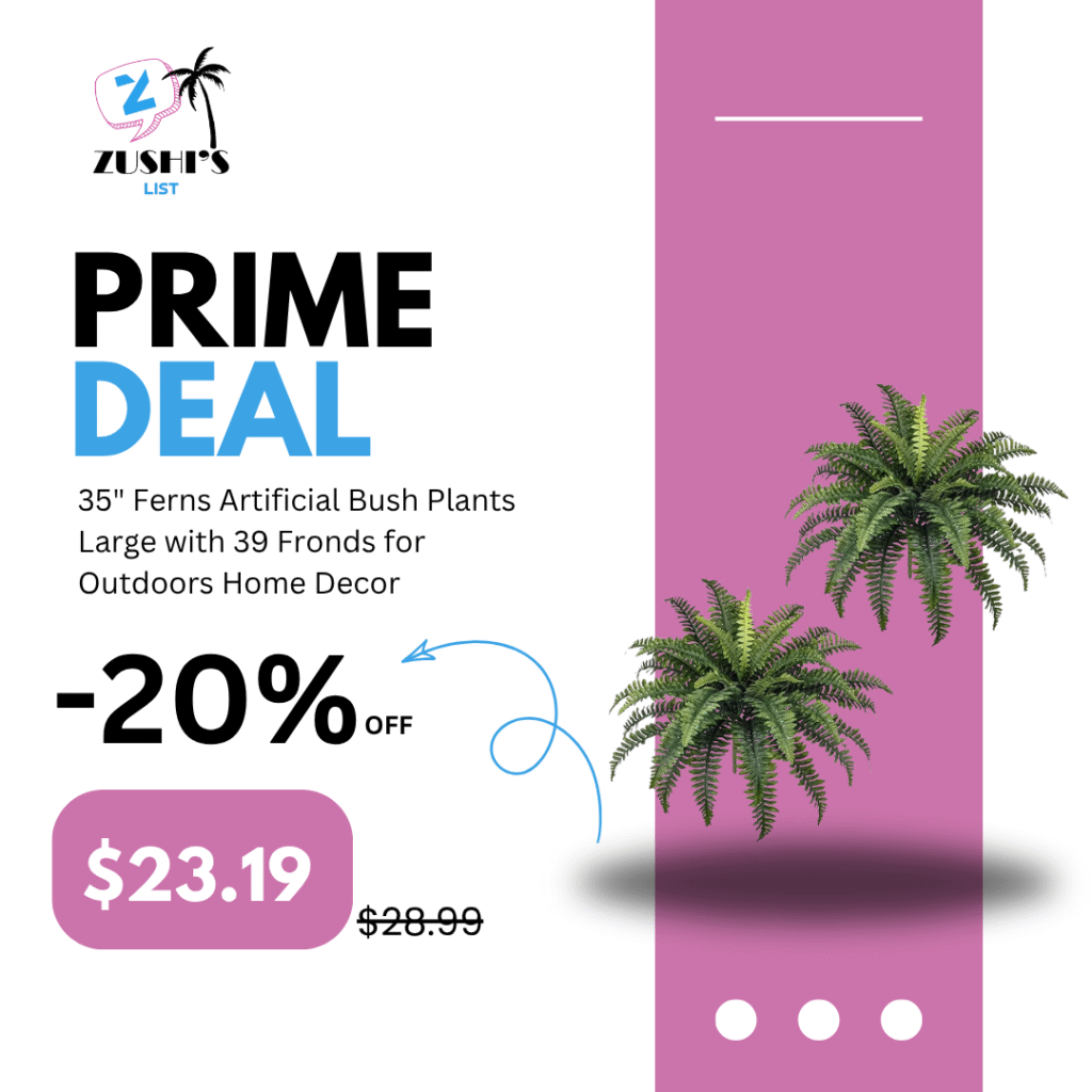 35″ Ferns Artificial Bush Plants Large, 2 Artificial Boston Ferns with 39 Fronds for Outdoors Home Decor