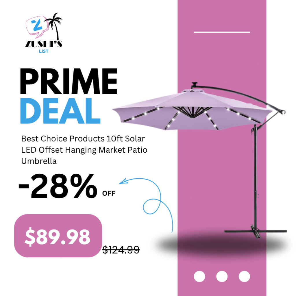 Best Choice Products 10ft Solar LED Offset Hanging Market Patio Umbrella for Backyard, Poolside, Lawn and Garden w/Easy Tilt Adjustment, Polyester Shade, 8 Ribs – Lavender
