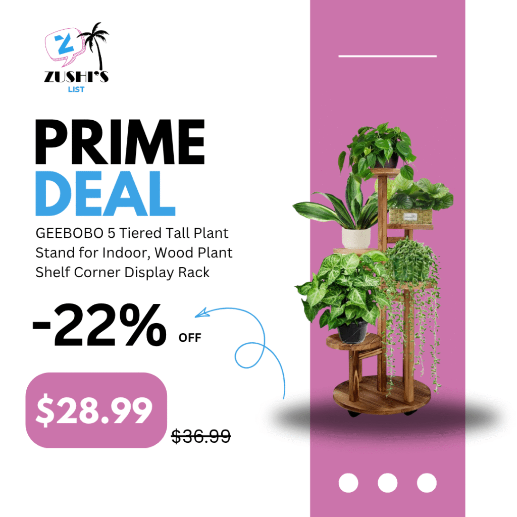 GEEBOBO 5 Tiered Tall Plant Stand for Indoor, Wood Plant Shelf Corner Display Rack, Multi-tier Planter Pot Holder Flower Stand for Living Room Balcony Garden Patio (Walnut)