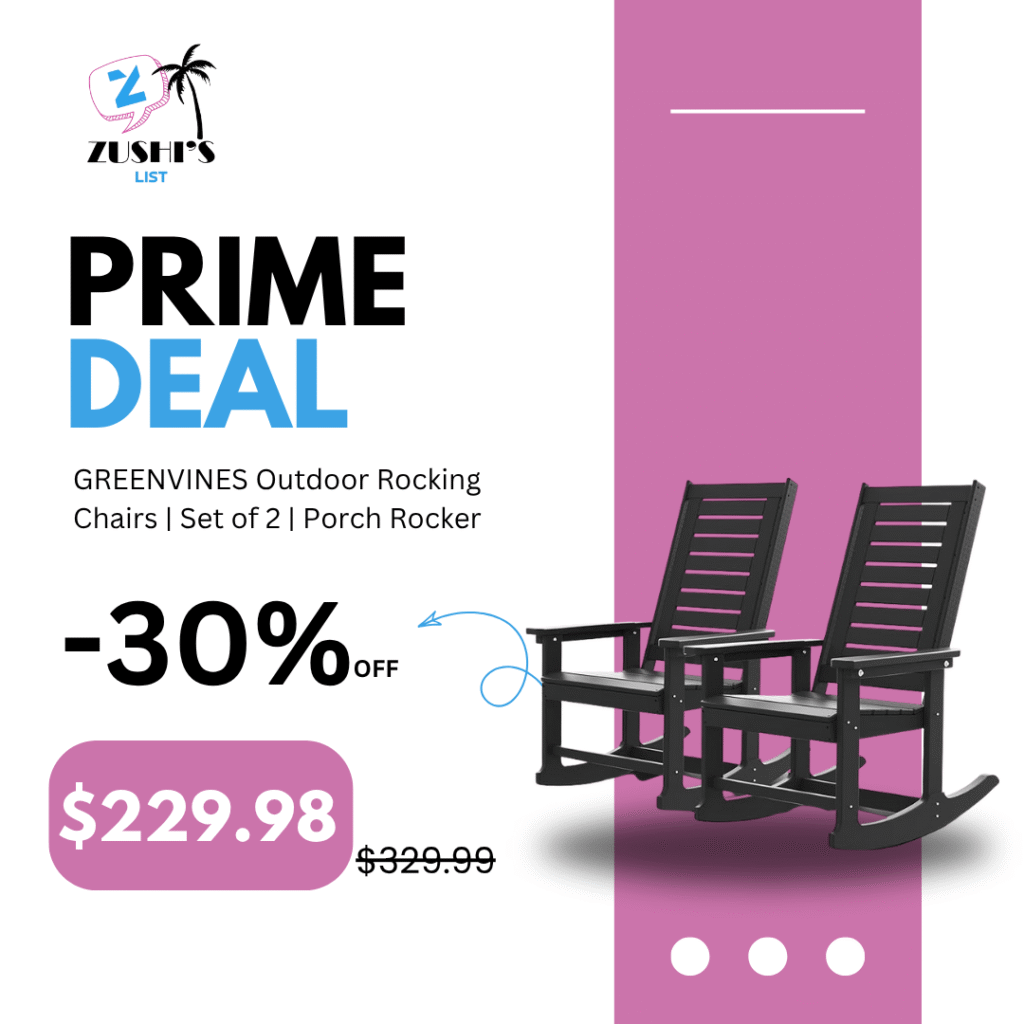 GREENVINES Outdoor Rocking Chairs | Set of 2 | Porch Rocker | HDPE Plastic | Black | Oversized Rockers | High Back | Big & Tall | Ladder Back | for Patio Outside Backyard Balcony
