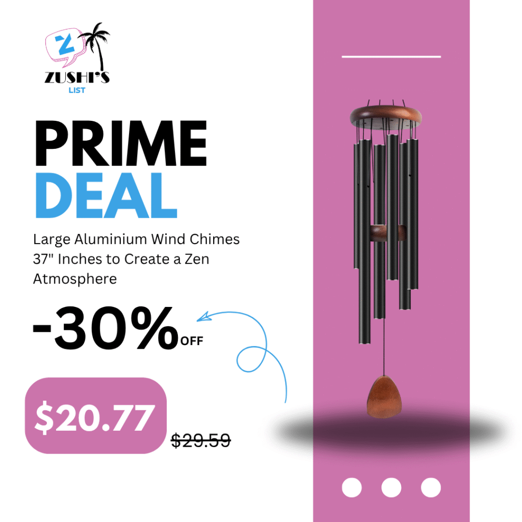 Large Aluminium Wind Chimes 37″ Inches to Create a Zen Atmosphere Suitable for Outdoor, Garden, Patio Decoration. Classic Black Wind Chimes with Wind Catcher Suitable as A Gift for Unisex