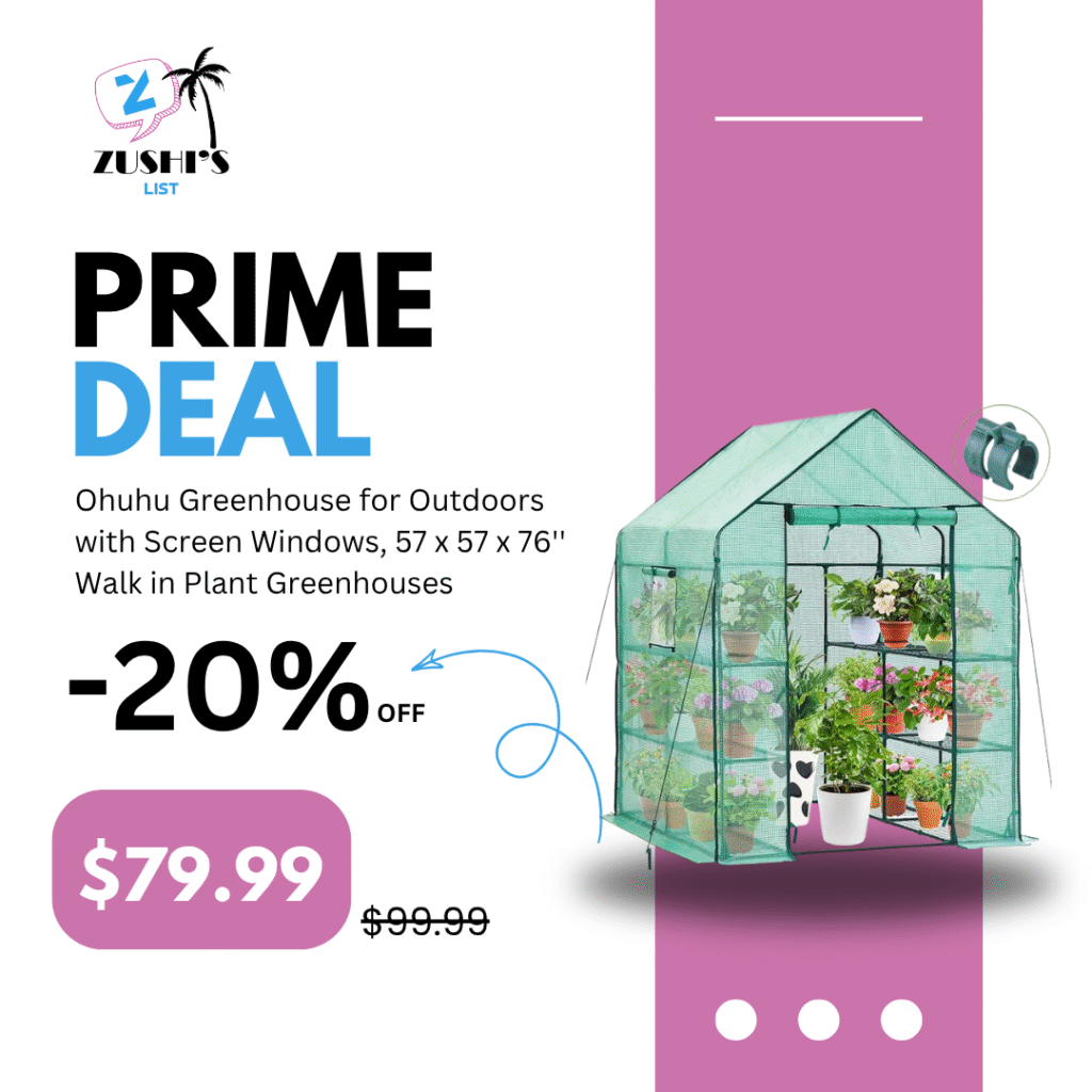 Ohuhu Greenhouse for Outdoors with Screen Windows, 57 x 57 x 76” Walk in Plant Greenhouses Heavy Duty with Durable PE Cover, 3 Tiers 12 Shelves Stands Plastic Portable Green House with Shelf Clips