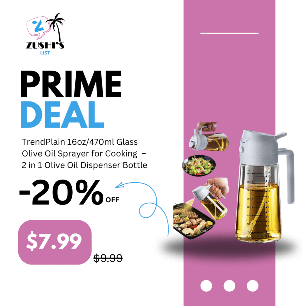 TrendPlain 16oz/470ml Glass Olive Oil Sprayer for Cooking – 2 in 1 Olive Oil Dispenser Bottle for Kitchen Gadgets and Air Fryer Accessories, Salad, BBQ – Ash