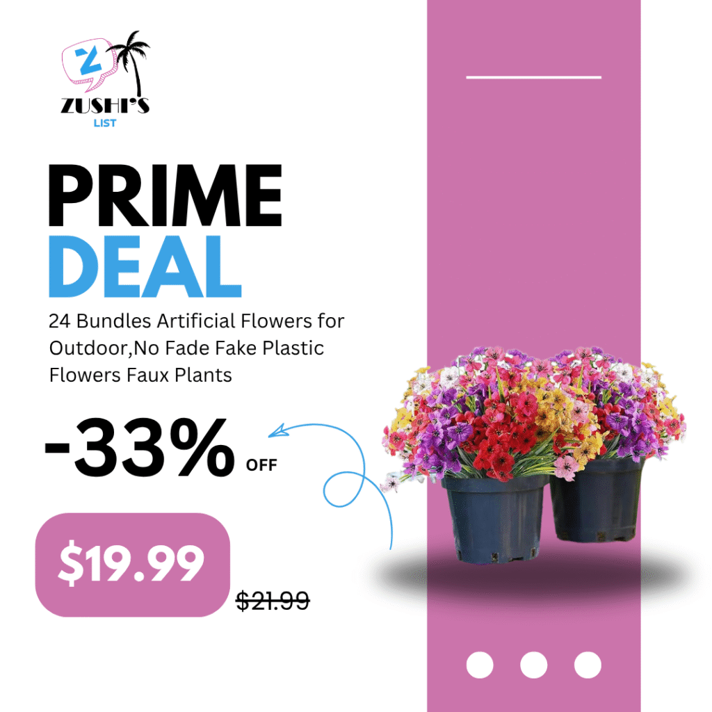 24 Bundles Artificial Flowers for Outdoor,No Fade Fake Plastic Flowers Faux Plants for Decoration Hanging Planters Indoor Outside Garden Porch Window Box Home Wedding Farmhouse