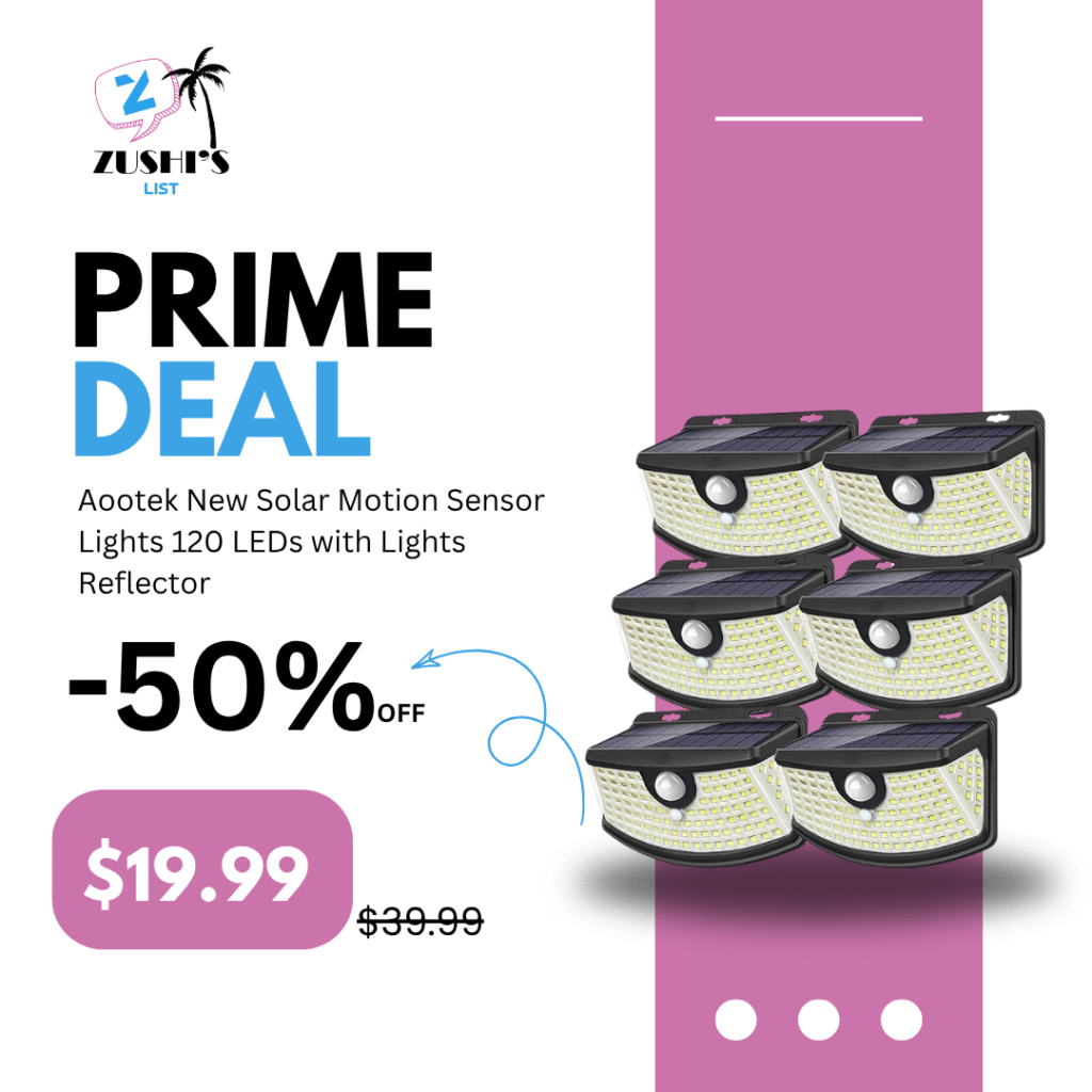 Aootek New Solar Motion Sensor Lights 120 LEDs with Lights Reflector,270° Wide Angle, IP65 Waterproof, Step Lights for Front Door, Yard, Garage, Deck (Front Button 6-Pack)
