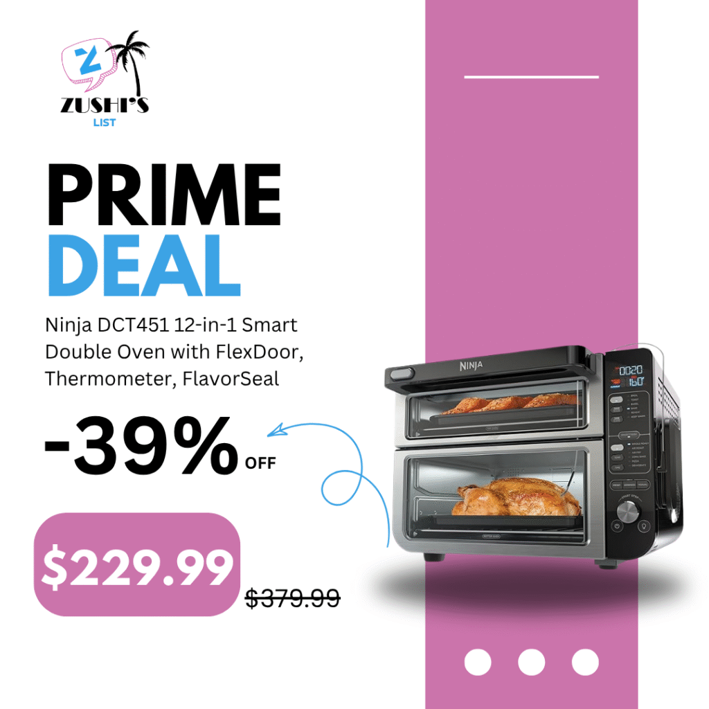 Ninja DCT451 12-in-1 Smart Double Oven with FlexDoor, Thermometer, FlavorSeal, Smart Finish, Rapid Top Convection and Air Fry Bottom , Stainless Steel