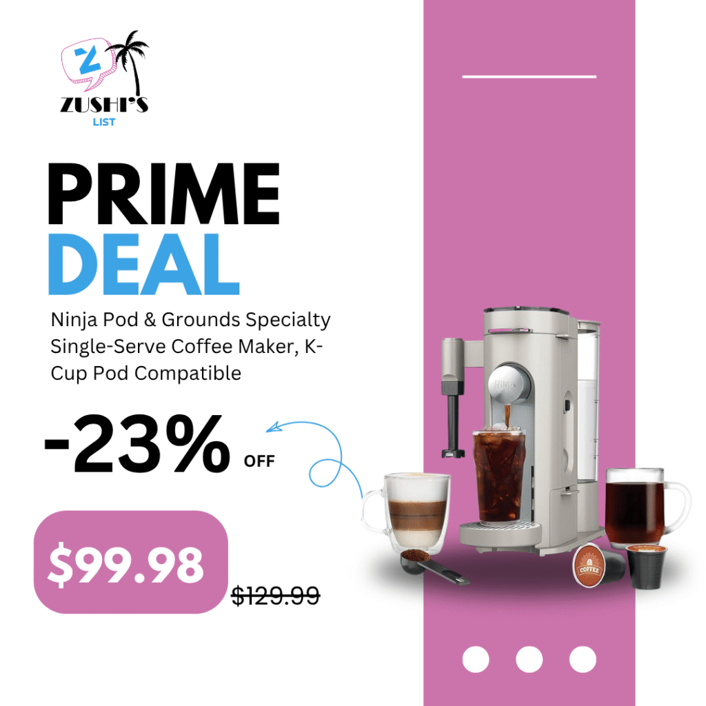 Ninja Pod & Grounds Specialty Single-Serve Coffee Maker, K-Cup Pod Compatible, Brews Grounds, Compact Design, Built-In Milk Frother, 56-oz. Reservoir, 6-oz. Cup to 24-oz. Mug Sizes, Stone, PB051ST