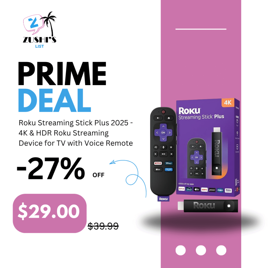 Roku Streaming Stick Plus 2025 – 4K & HDR Roku Streaming Device for TV with Voice Remote – Free & Live TV